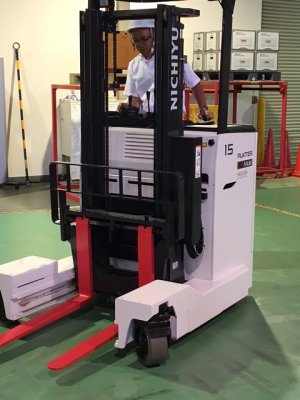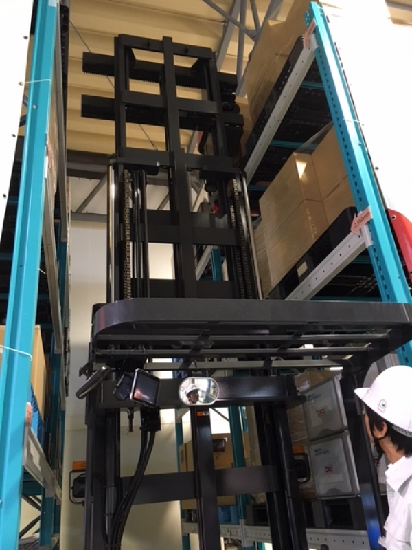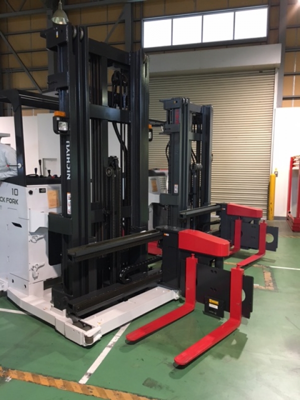 文字通り棚(ラック)用のフォークリフトなのですが、メリットとしては狭い通路に安全に進入でき且つ