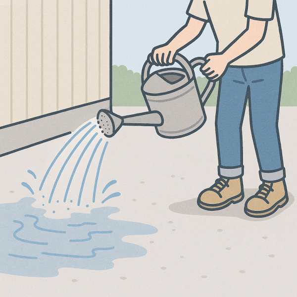 そこでおすすめなのが「打ち水」です。倉庫前のコンクリートやアスファルト部分に水をまくことで、
